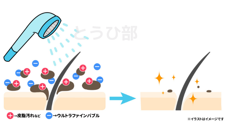 『ファインバブル』がくっつき↓洗い流してくれる!!