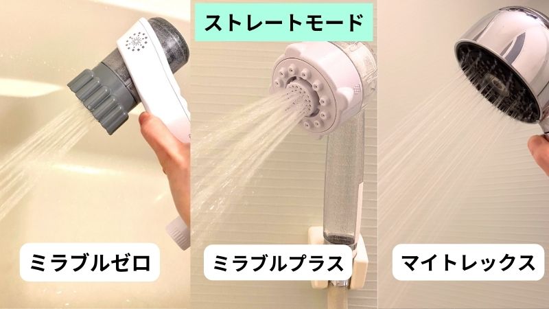 対して「マイトレックス」は、ほかの2つより水圧は弱いですが、