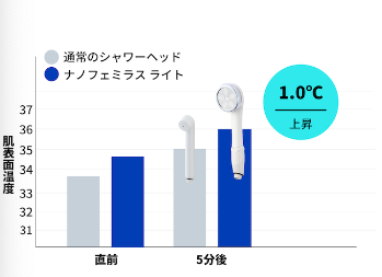 なので、体から離して浴びる場合は、設定温度を2〜3度上げてつかうといいですよ^^